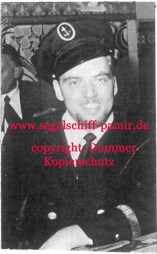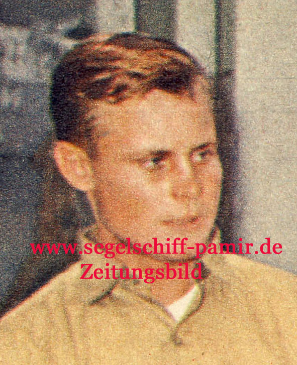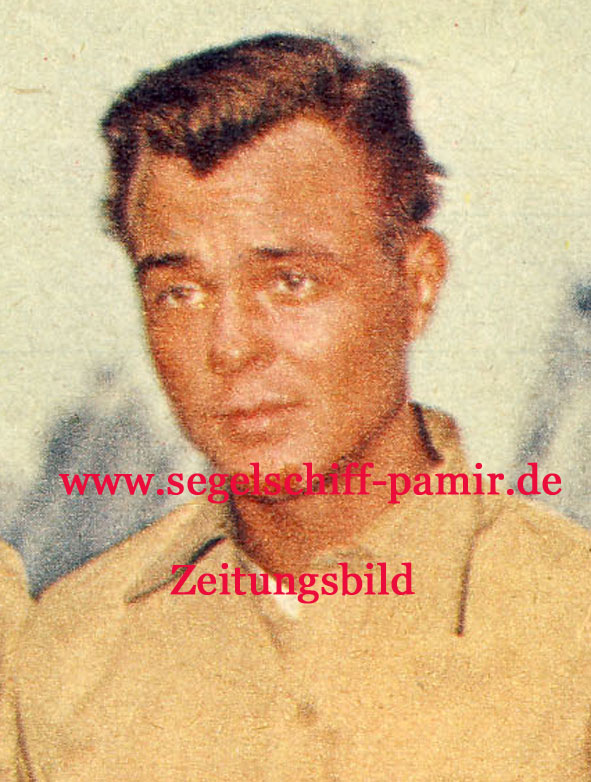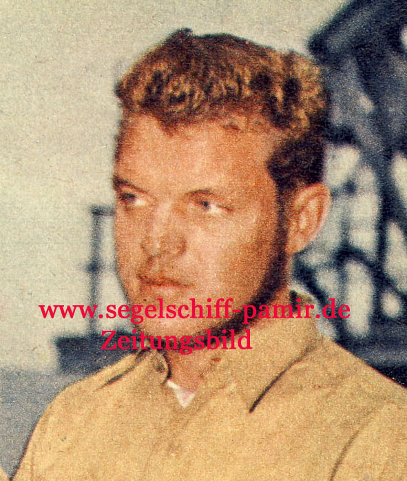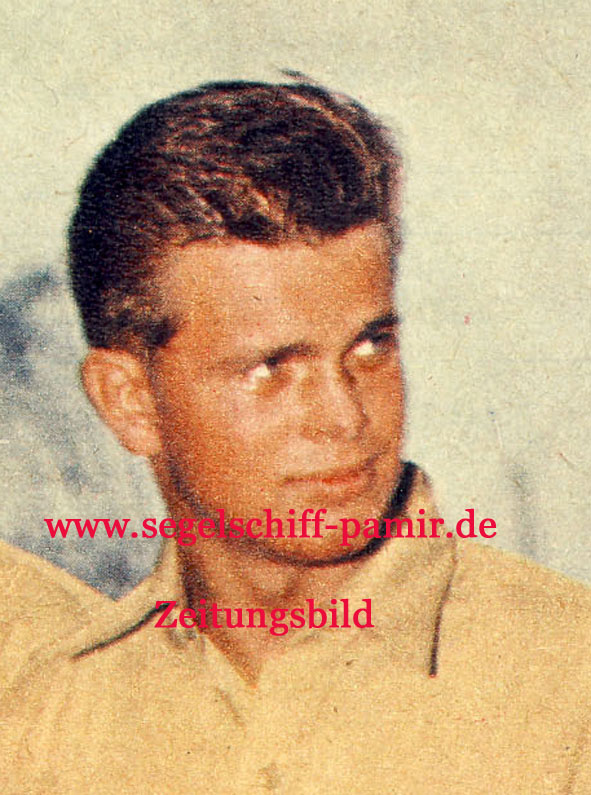 Günter Haselbach Jahrgang 1937 seit Mai 1956 an Bord der PAMIR . Im Mai 1957 zum Jungmann befördert und im Juni zum Leichtmatrosen . G. Haselbach begeisterte sich bereits während der Umbauphase von Pamir und Passat in Kiel für dir Pamir . Er war bereits mit Stober, P. Meyer, S. Braun und Buschmann gut bekannt. Im Rettungsboot 2 überlebt er unter 22 Männern als einziger Seemann . Es bedarf schon einer ungeheueren seelischen und körperlichen Kraft diese Hölle von 72 Stunden zu überstehen (ausführlich kann man im Buch „Pamir und Passat“ von E.R. Andersen nachlesen, G. Haselbach hat